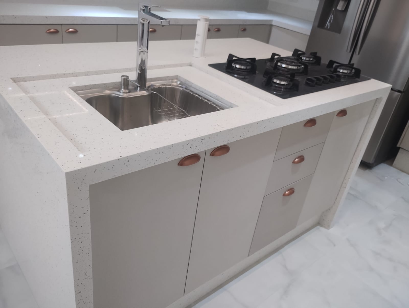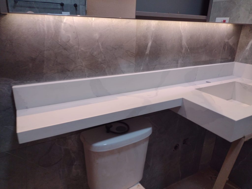 Trabalhamos com fabricação e instalação de peças sob medida para cozinhas, banheiros, lavabos e escadas, sempre com acabamento profissional.